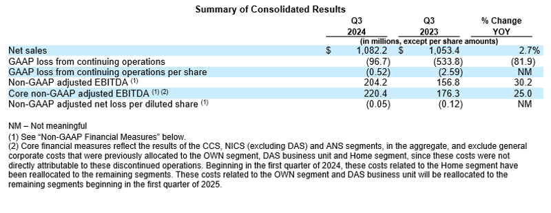 Loss from continuing operations of $96.7 million, or $(0.52) per share, in the third quarter of 2024, improved compared to the prior year period's loss from continuing operations of $533.8 million, or $(2.59) per share. Non-GAAP adjusted net loss for the third quarter of 2024 was $13.2 million, or $(0.05) per share, versus $30.3 million, or $(0.12) per share, in the third quarter of 2023.